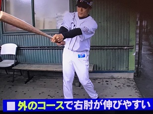 松井 そのときの伸ばす動作ですよね。インコースだと腕を畳むんでそのまま打てますからね。