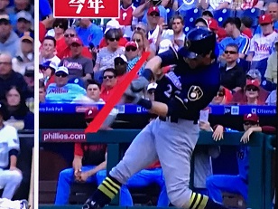 2019年5月31日にBS1で放送された『ワースポ×MLB』でシーズン68本ペースでホームランを量産するメジャー最強バッター・イェリッチを黒木知宏がフリーアナウンサーの山本萩子と共に分析しています。