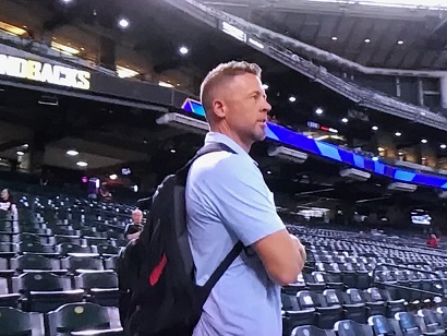 ジェフ ハーイ、ジェフ・ウィリアムスです。阪神のニュースをチェックしていました。今は阪神のスカウトをしているんです。ようこそ、わが家へ。