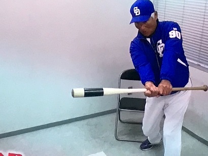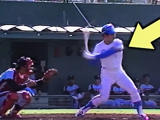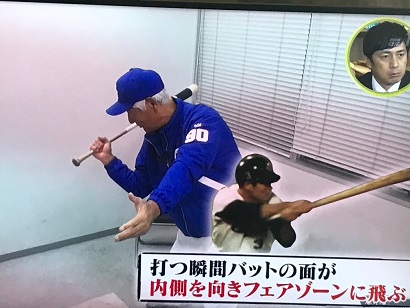 土井 普通にヘッドをピッチャーに向けずに構えたらバンっと振ったらヘッドの面が早く出てしまうので。そうなると芯に当たっても全部ファウルになるんですよ。そこでヘッドをピッチャーに向けブワンとスイングしたらちょうどヘッドが遅れてくる。