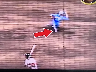 永射 この時点でまだ足は地面に着いてない。浮いてるんです。「地面に着いたよ」とだます。そこでバッターがトップに入った時に、もう1歩ちょっと前に行く。そこでバッターの体がちょっと前に行く。でもそこでまだもう1回だます。