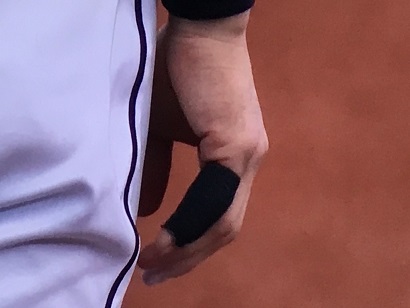 若月健矢 スゴいっすね、アレ。指にテーピングで止めてくっ付けて出てきたんですよ。それで普通に送球してたんで。