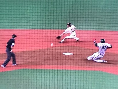 そして深めに守っていたセカンドは2塁に入れず盗塁が余裕で決まる。