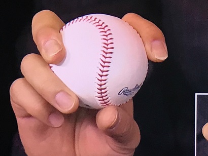 上原 この握りだと僕の中では速い方のスプリットなんですよ。それであと握りを深くするパターンもある。