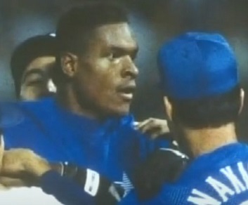 ブラッグス 本当のところは分からないけど、中日には前の日にも当てられて、わざと当てられたんじゃないかと思っていたんだ。そんな時にまた当てられたもんだから、あんなことをしてしまった。津野は帽子を取って謝っていたけど、怒りを抑えられなかったねぇ。更に次の年は与田の剛速球が僕の顔の近くに来て、手に当たったんだ。そのデッドボールの直後、彼を睨み付けたんだけど、与田は帽子を取ろうとしなかった。それでますます「わざと狙ったな・・・」と思ってしまったんだ。