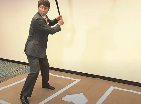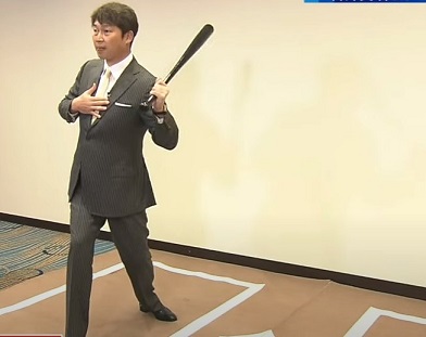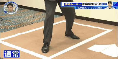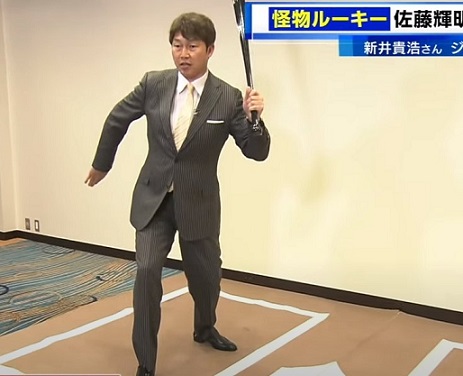 新井 彼は構えて打ちにいく時にしっかりとピッチャー方向に踏み込んでいけてるんです。通常はこうなんです。