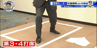 新井 それが3打席目になってくると踏み込む時につま先がピッチャー方向に向いてしまっているんですね。