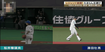 松井稼頭央 逆シングルで捕った時に僕だったら踏ん張らずにそのままジャンピングスローのような感じで投げちゃうんですけど、源田は小刻みにステップして踏ん張って、そこから投げてるんで。