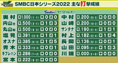 井森 そしてここで第6戦を戦ってのヤクルトの打撃陣の成績です。