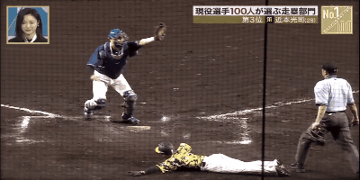 2022年11月26日にフジテレビで放送された『S-PARK』でプロ野球選手100人が選ぶ走塁部門のランキングが紹介されていました。ナレーションと共に進行します。