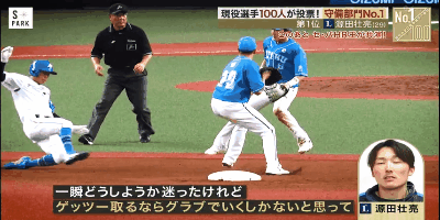 2022年11月26日にフジテレビで放送された『S-PARK』でプロ野球選手100人が選ぶ守備部門のランキングが紹介されていました。ナレーションと共に進行します。