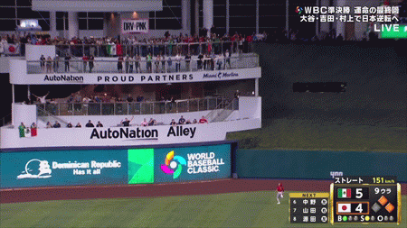 WBC準決勝のメキシコ戦。1点を追う9回に大谷の2塁打からノーアウト1-2塁。ファーストランナーは代走の周東。今シーズンメジャーで20盗塁の大谷が3塁を回ると、ボールは内野手へ。しかし、周東は既にホームイン。