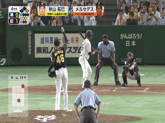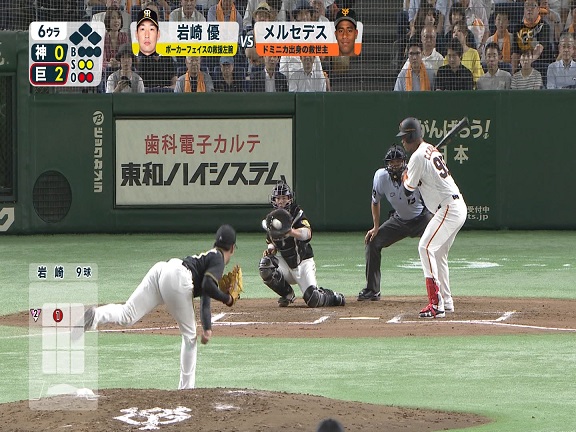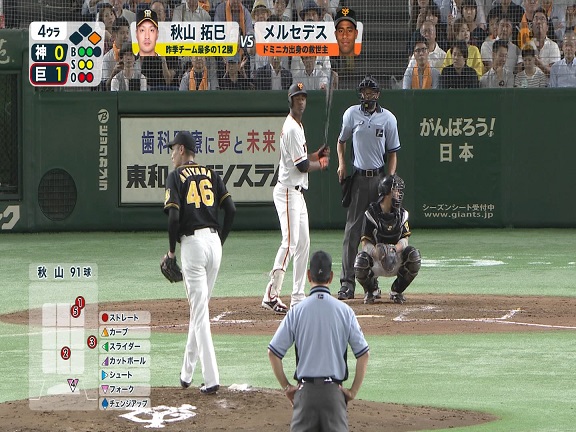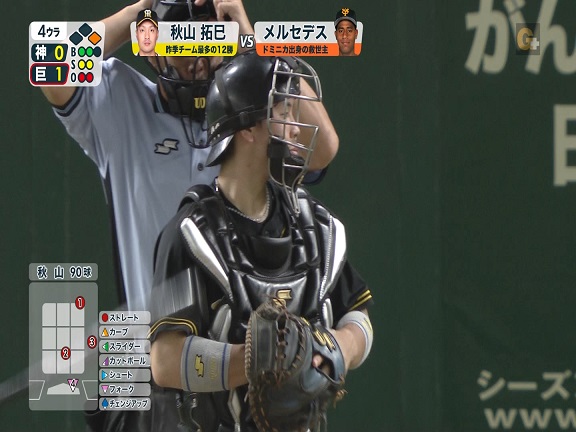 この打席の結果は次の6球目にメルセデスに長打を打たれます。1球外したからどうこうではありませんが結果は一応お知らせしておきます。