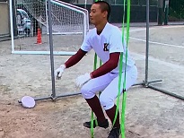 赤星 出てきました。僕の中ではフォームも素晴らしいです。さっきのロープを使った体幹トレーニングがありましたよね。
