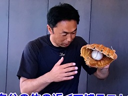 宮本 ボールを早く取ろうとして前に出て早く動作をしても時間がかかるし自分の体のバランスが悪くなる。バランス良く投げるためには前に出て捕ることを我慢して体の近くで捕る。